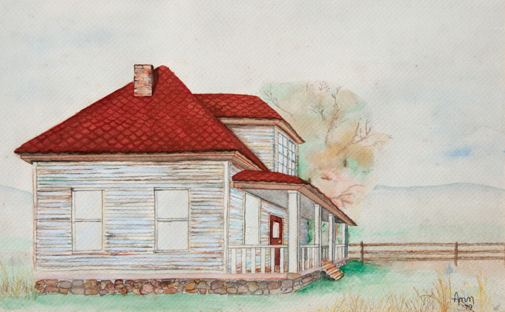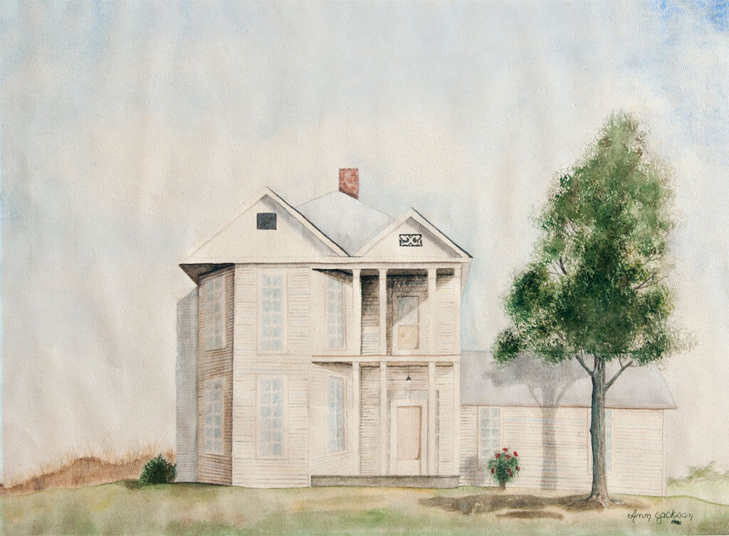 The Biggs House. Watercolor painting by Ann Jackson, 1980.